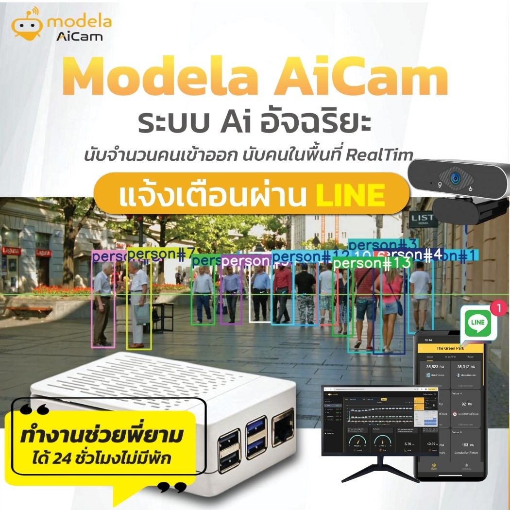 Modela AiCam IoT – กล้องอัจฉริยะนับคนด้วยระบบ AI โซลูชันสำหรับองค์กร, ร้านค้า, อาคาร, โรงงาน หรือพื้นที่ควบคุม ที่ต้องการรู้จำนวนคนแบบ Real-time